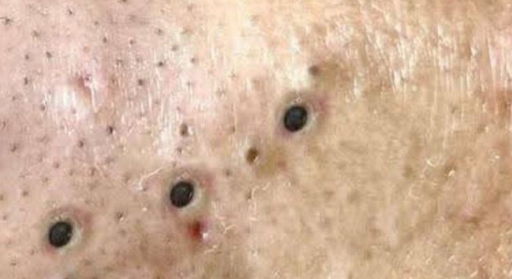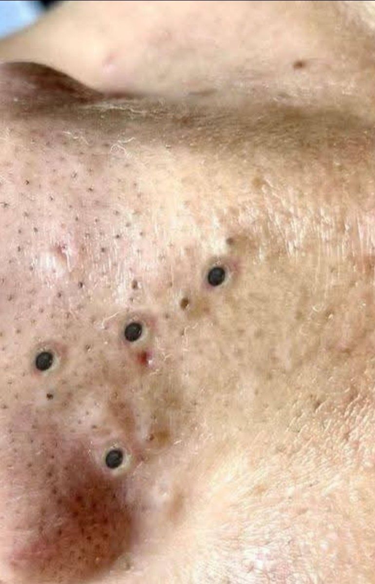 Blackheads develop when excess sebum and shed skin cells accumulate within a hair follicle and form a partially blocked pore. This process begins with increased sebum production from the sebaceous glands, combined with abnormal follicular keratinization in which dead skin cells are not shed efficiently. When this mixture becomes trapped but remains open to the air, oxidation of melanin and lipids causes the dark appearance characteristic of blackheads. Oily skin is more prone to this sequence because higher levels of sebum increase the likelihood that pores will become congested.